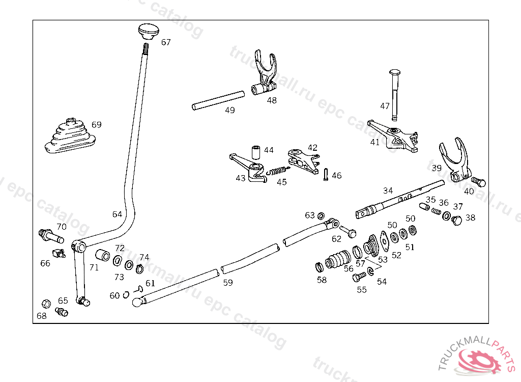 SHIFTING ROD LONGITUDINAL DIFFERENTIAL LOCK CONTROL, UP TO IDENT NO. 4 477510 FROM IDENT NO. SEE UNIT MICROFICHE,MODEL 750.5