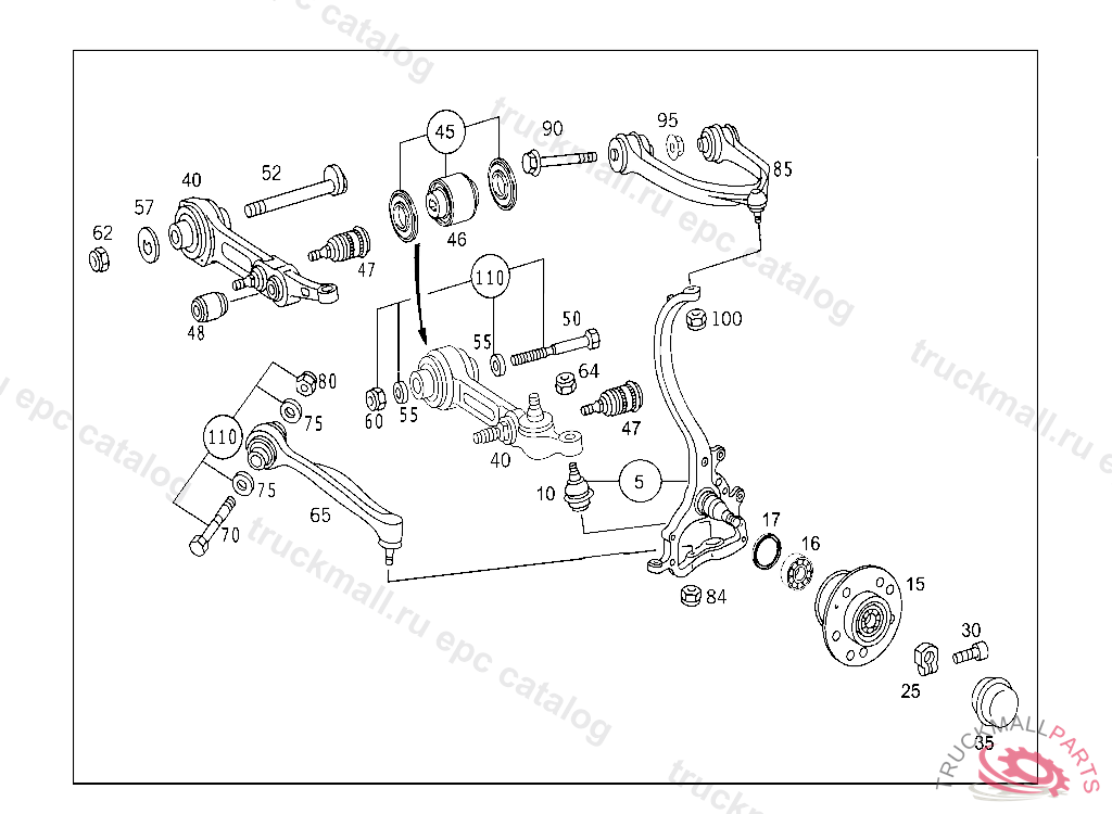 SPRING CONTROL ARM BOTTOM LEFT & RIGHT, THE OLD PART MUST NO LONGER BE INSTALLED, Replaced By: A2153300607
