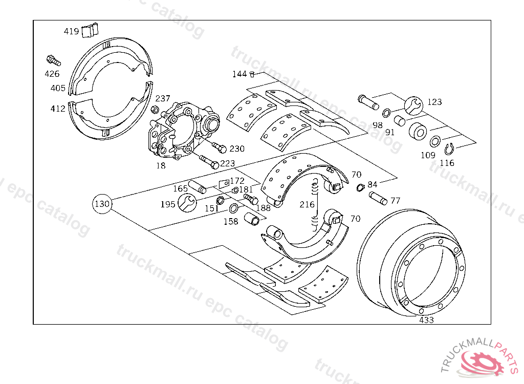 BRAKE SHOE , FIRST EXHAUST STOCK OF OLD PARTS UP TO FRONT AXLE E 128437, Replaced By: A3934202519