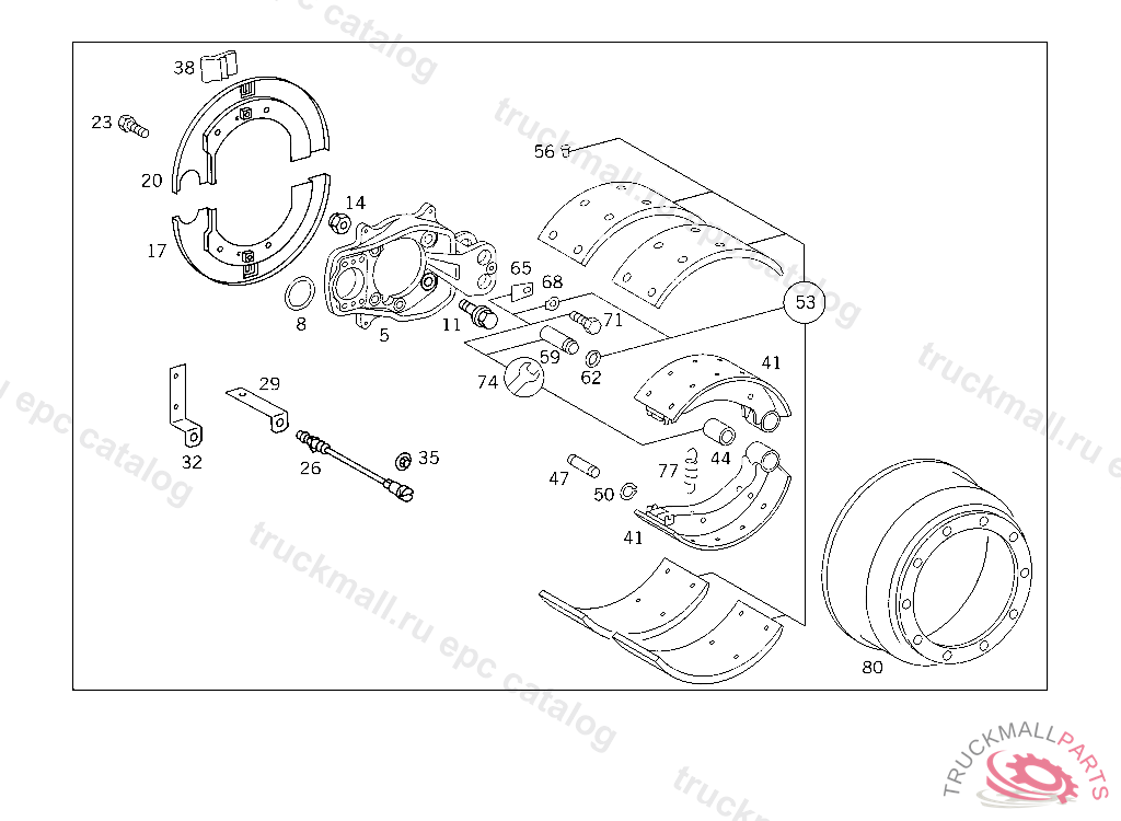 BRAKE SHOE LESS LINING, WIDTH: 135 MM
