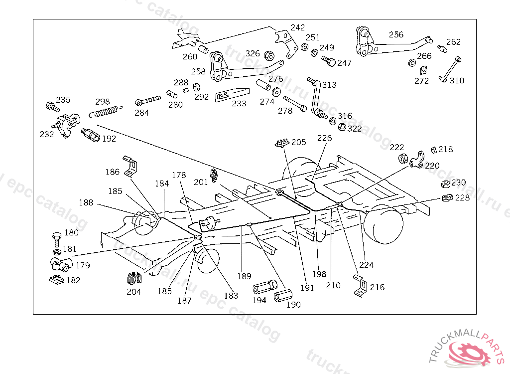 BEARING BRACKET REVERSING LEVER, FROM CHASSIS 289681-499999, ALSO INSTALLED ON 289628,AND USED WITH 3050 MM WHEELBASE FROM CHASSIS 622908 USED WITH 3350 MM WHEELBASE FROM CHASSIS 623314 USED WITH 3700 MM WHEELBASE FROM CHASSIS 624245
