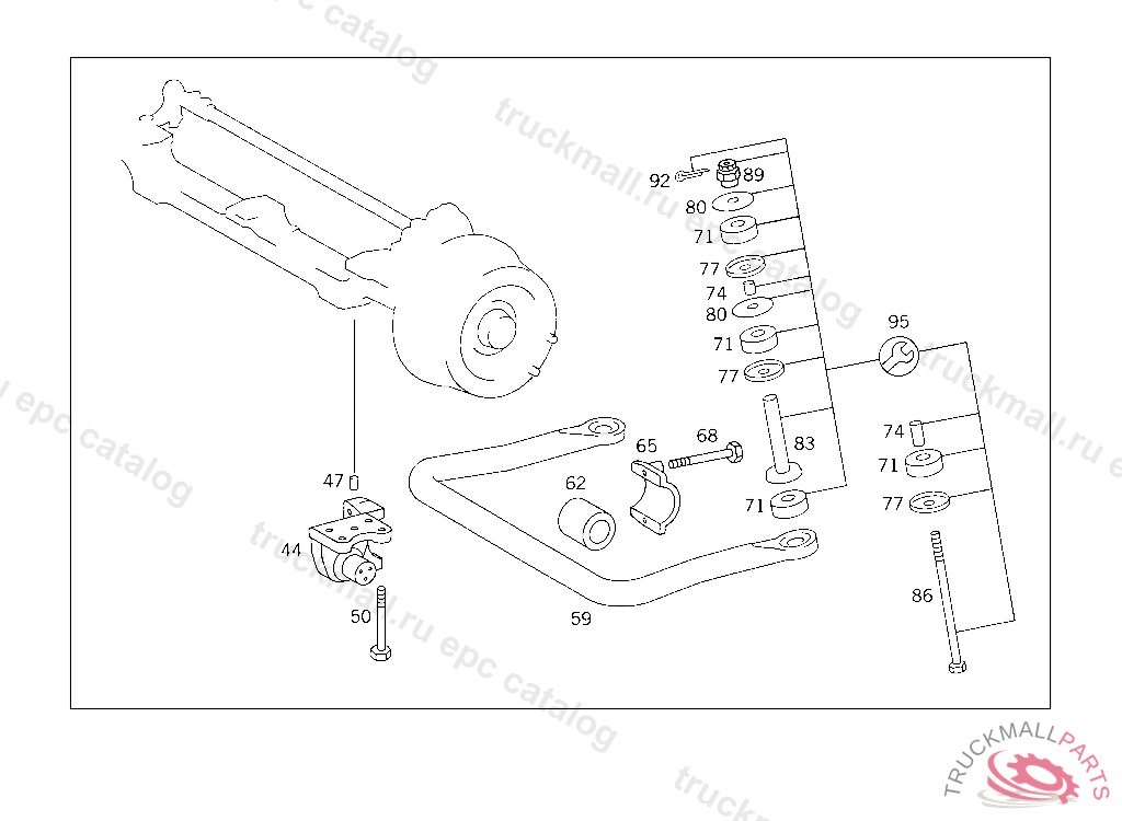 BEARING BRACKET TORSION BAR AND LONGITUDINAL CONTROL ARM ON THE RIGHT