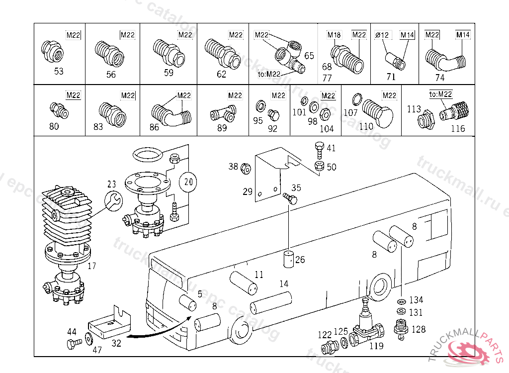 RESERVOIR COMPRESSED AIR, UP TO IDENT NO. 080958 WITH MERCEDES-BENZ BODY UP TO IDENT NO. 080934 LESS MERCEDES-BENZ BODY EXCEPT FOR 079273,079335,080078,080091,080798,080804,080805,080836,080838,080849.