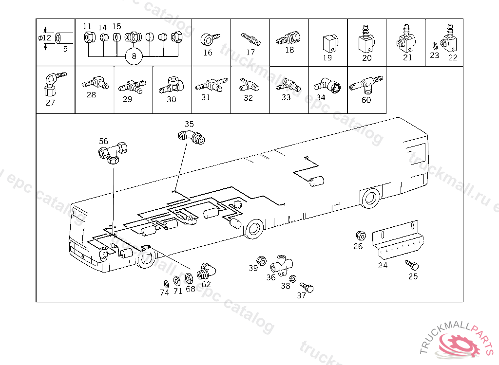 LINE (COILED TUBE) TO REAR CARRIAGE 1 X 8 + 2 X 12, 270 MM