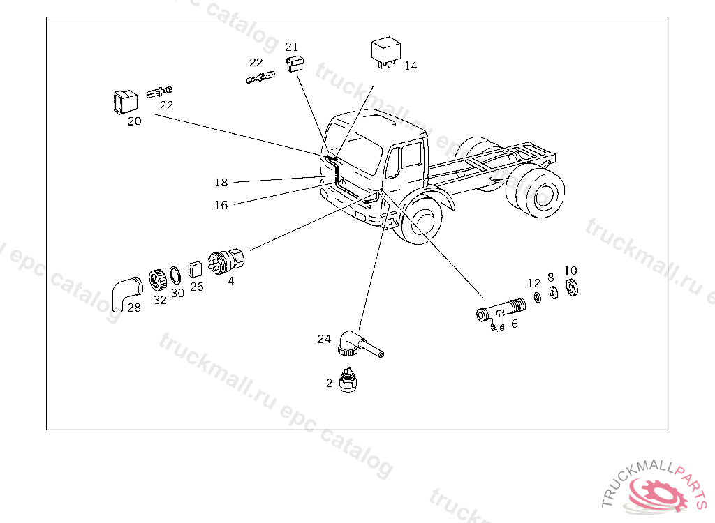 PIN BUSHING HOUSING. PLUG HOUSING FROM CHASSIS/CAB CONNECTION POINT TO TACHOGRAPH