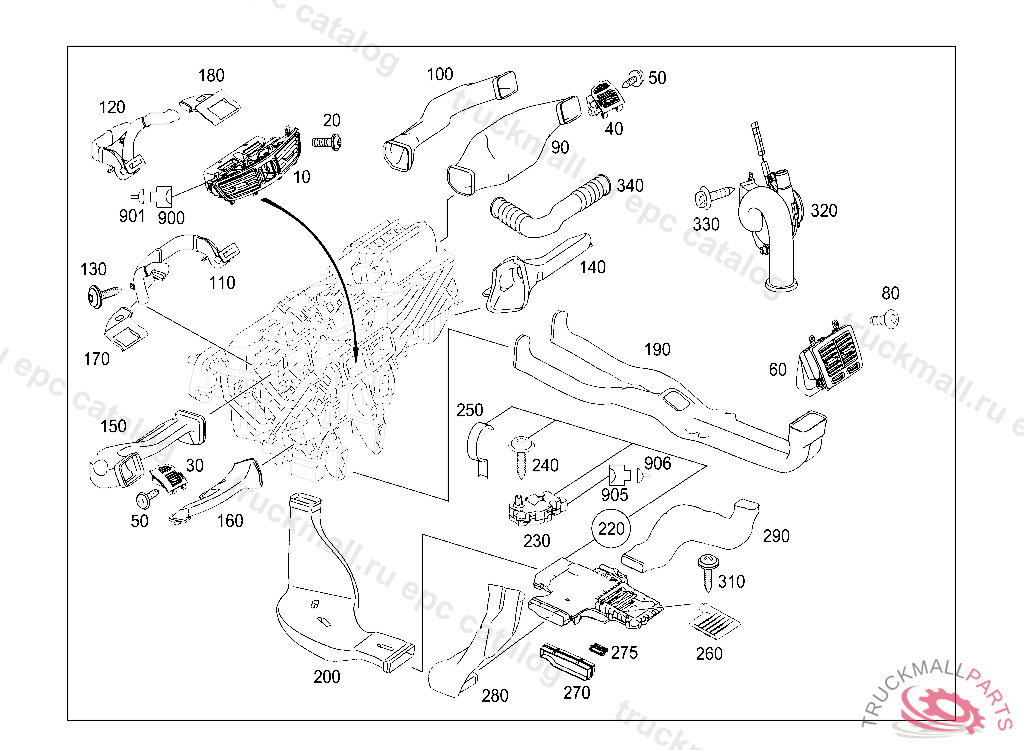 AIR DUCT REAR AIR DEFLECTOR, BOTTOM RIGHT, FIRST EXHAUST STOCK OF OLD PARTS UP TO IDENT NO. A 30189020090914, Replaced By: A2218301246