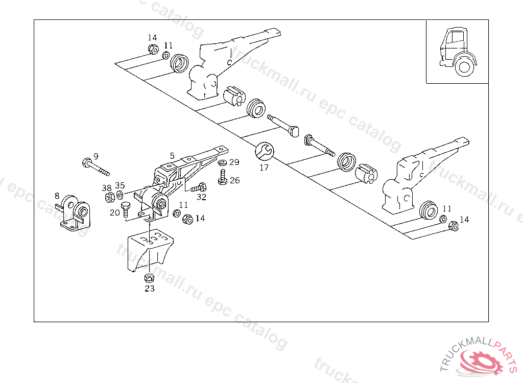 BOW CAB SUSPENSION,FRONT, FOR USE WITH SHORT MERCEDES-BENZ CAB