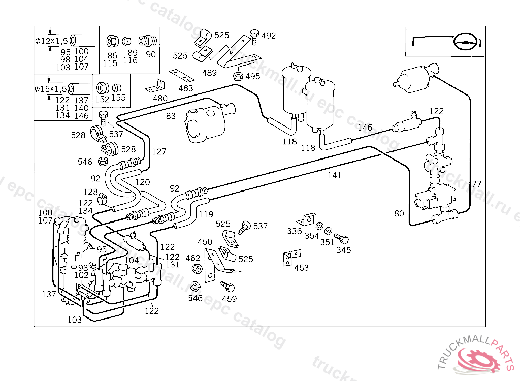 LINE (PRESSURE LINE) TEE-PIECE STEERING TO TEE-PIECE P-VALVE "D1-P1"