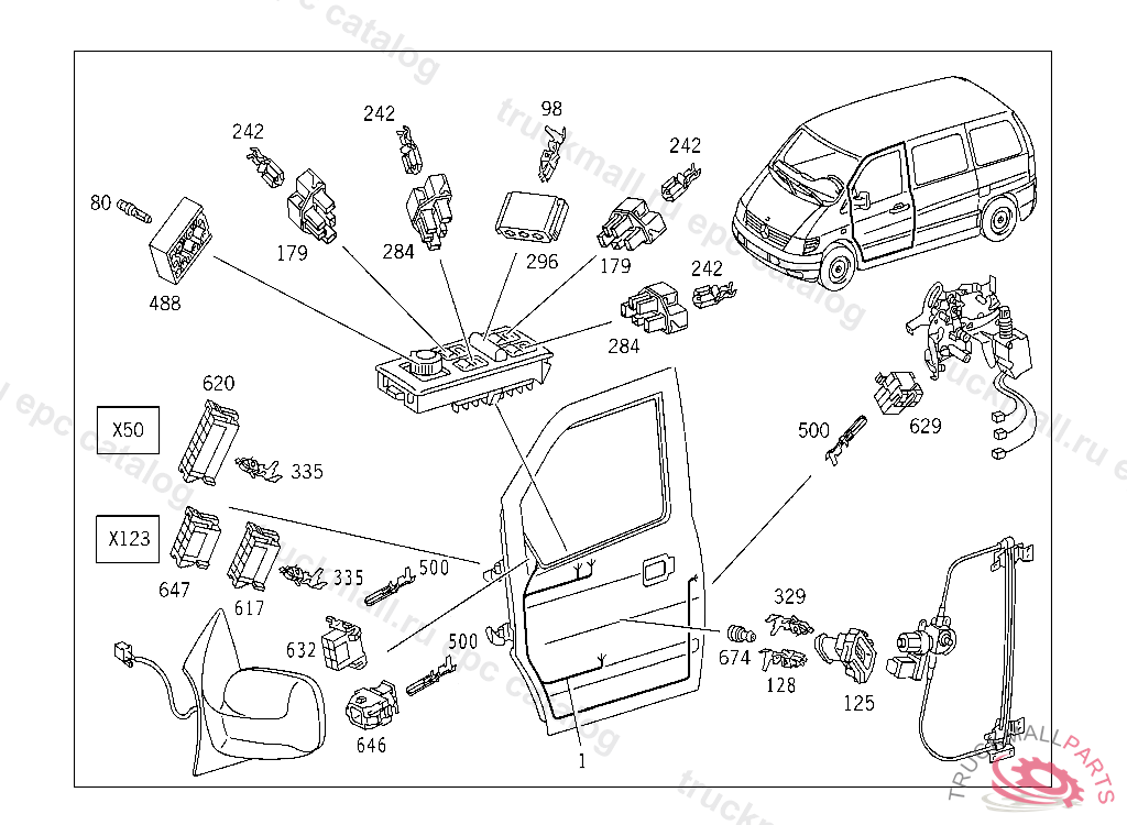 CABLE HARNESS DRIVER DOOR, WITHOUT COMFORT LOCKING SYSTEM, UP TO IDENT NO.: 109000 DELIVER ADDITIONALLY ALSO: 1X A 655 545 28 28 + 8X A 011 545 80/81 26