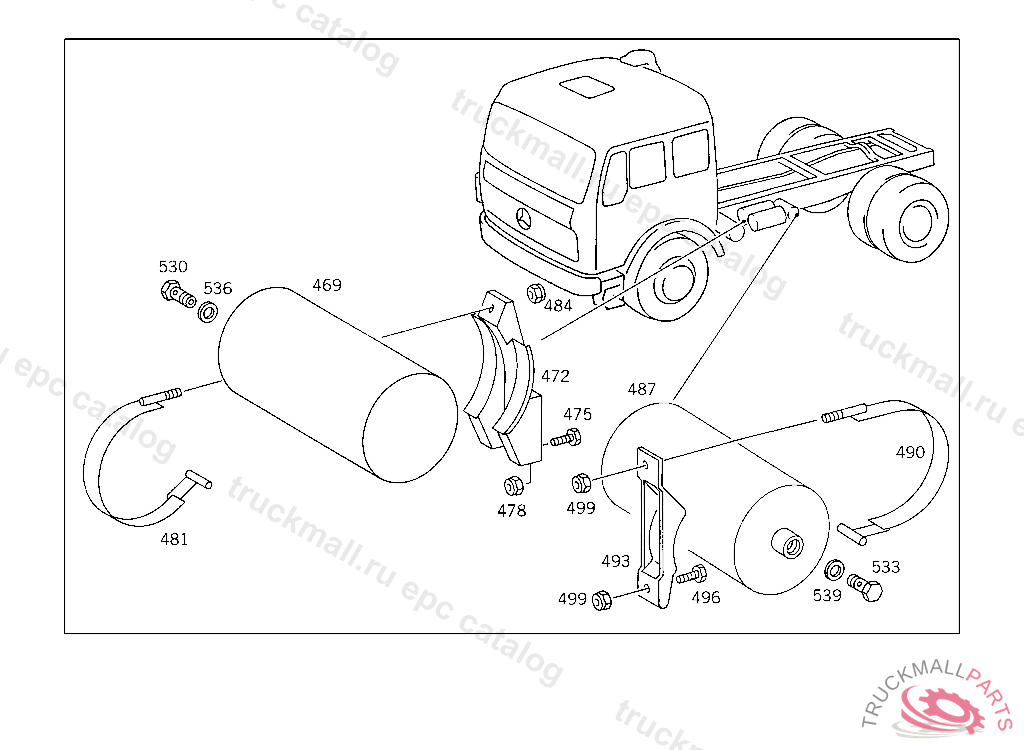 COMPRESSED AIR RESERVOIR. RESERVOIR6 L, TO VOSS 232, FOR VEHICLES WITH VOSS 230 CONNECTOR:ADD. MOUNT FITTING "A 004 997 82 72" WITH O-RING "A 000 987 04 46" AND THRUST RING "A 000 997 02 03" TO AIR RESERVOIR
