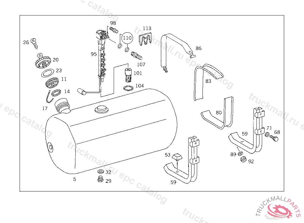 FUEL TANK , FIRST EXHAUST STOCK OF OLD PARTS UP TO IDENT NO. K 169122, Replaced By: A6524700101, +001A0005409917, +001A0115426017