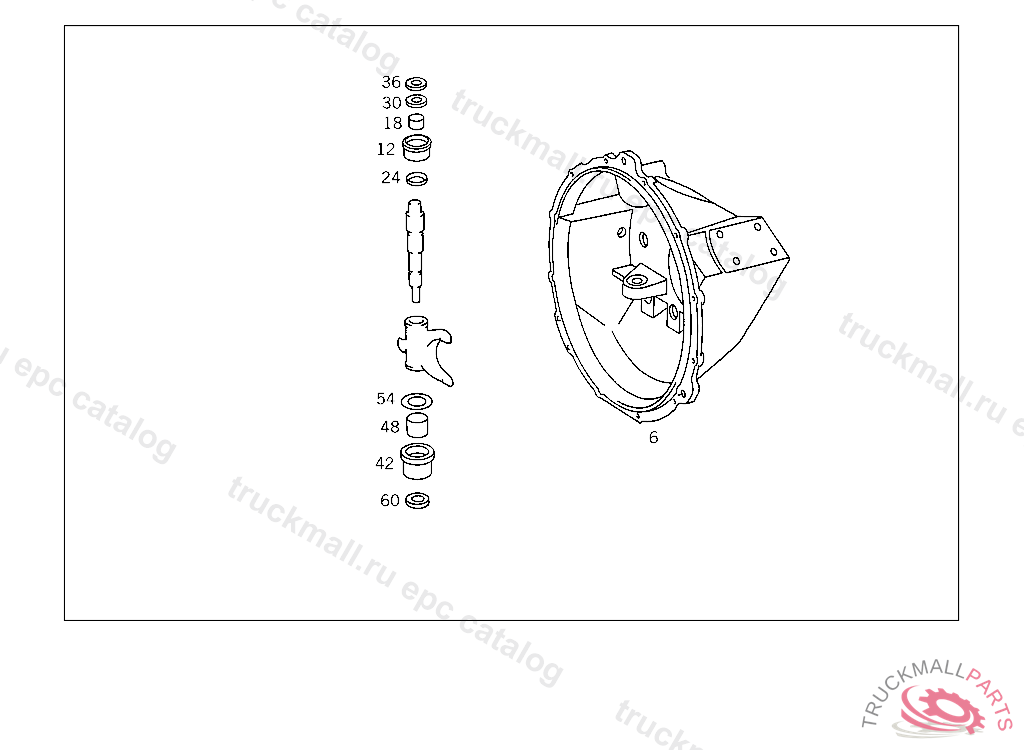 BELL HOUSING , FIRST EXHAUST STOCK OF OLD PARTS UP TO IDENT NO. K 014343, Replaced By: A6552511001