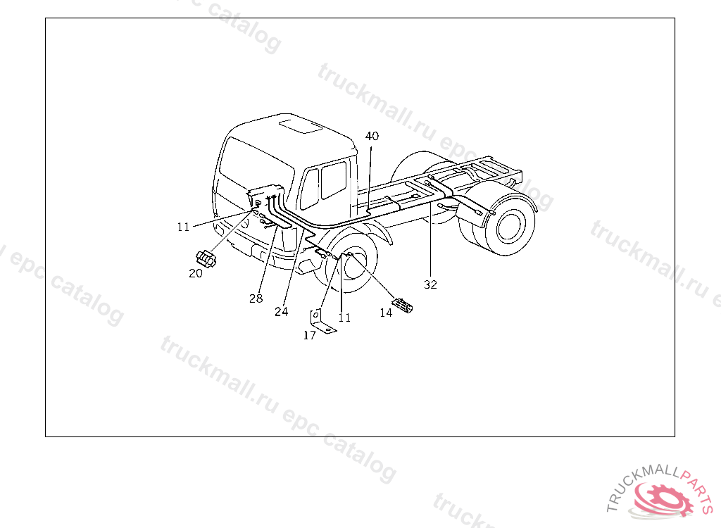 CABLE HARNESS FROM CHASSIS/CAB TO SENSORS & RIGHT REAR SOLENOID VALVE, THIS CABLE HARNESS IS A COMPONENT OF FRAME MOUNTED CABLE HARNESS ASSEMBLY AND CAN BE MADE AVAILABLE AS A SPARE ATTENTION: WHEN PLACING ORDERS, PLEASE QUOTE VEHICLE IDENT NO. ONLY IF FRAME MOUNTED CABLE HARNESS IS REQUIRED AS AN ASSEMBLY TO AVOID PULSE DISTORTIONS, CABLE OVERLENGTHS SHOULD NOT BE LAID IN RING/LOOP SHAPE