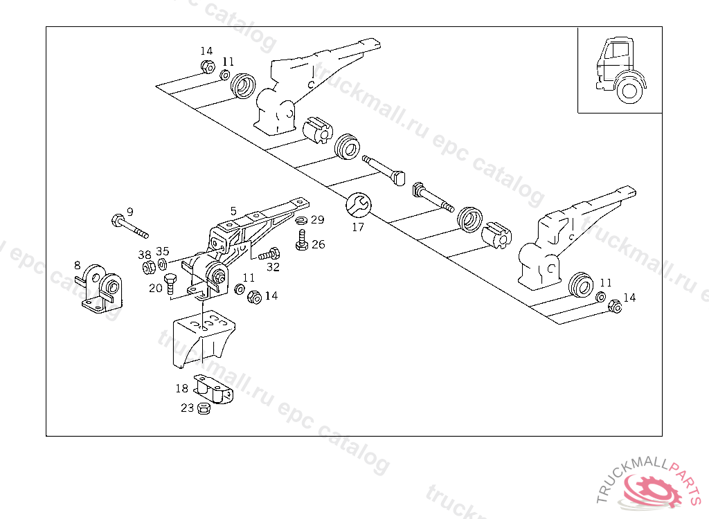 BOW CAB SUSPENSION,FRONT, FOR USE WITH SHORT MERCEDES-BENZ CAB