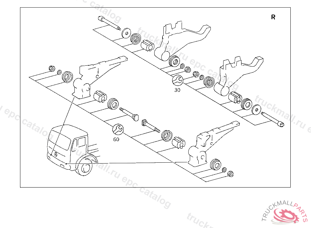 REPAIR KIT CAB SUSPENSION,FRONT, FOR USE WITH SHORT MERCEDES-BENZ CAB5 764325
