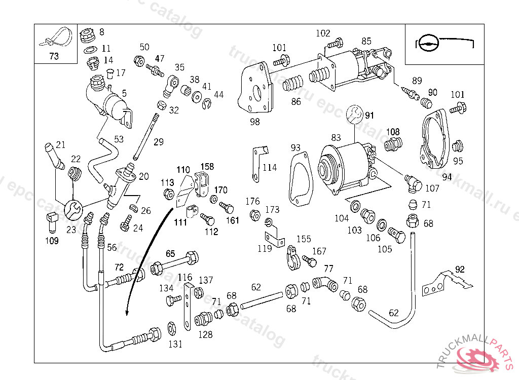 CLAMP DELIVERY AND SUCTION LINES TO ENGINE, TOP