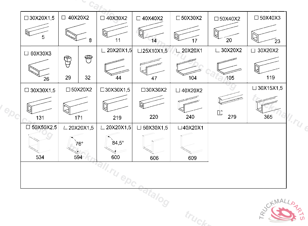 TUBE BEHIND REAR AXLE, TO BE ADAPTED DURING ASSEMBLY XB373 612 61 18 RECTANGULAR TUBE 40 X 40 X 2,0 X 2386 MM