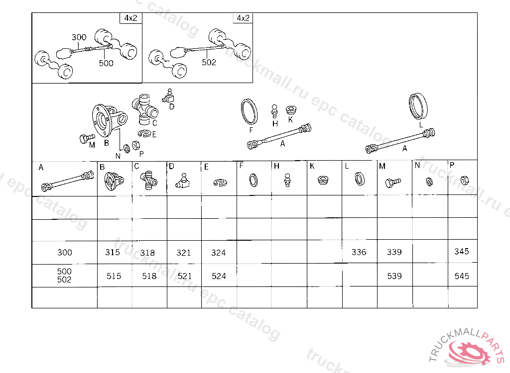 PROPELLER SHAFT FROM INTERMEDIATE BEARING TO REAR AXLE 1630 MM, FLANGE AND UNIVERSAL JOINT CROSS NOT AVAILABLE PART IS ONLY OR ALSO SUPPLIED AS RECONDITIONED PART