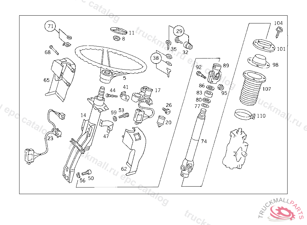 CONNECTOR STEERING SHAFT BEARING TO CAB,5 191030