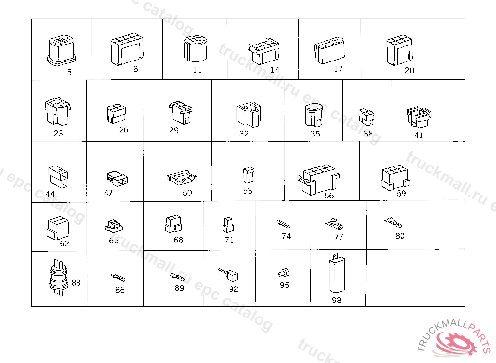 PIN BUSHING HOUSING. PLUG HOUSING FROM CHASSIS/CAB CONNECTION POINT TO TACHOGRAPH