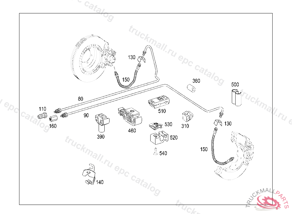 LINE FROM PRESSURE RETAINING VALVE TO RIGHT REAR BRAKE HOSE 3090 MM,P 136599