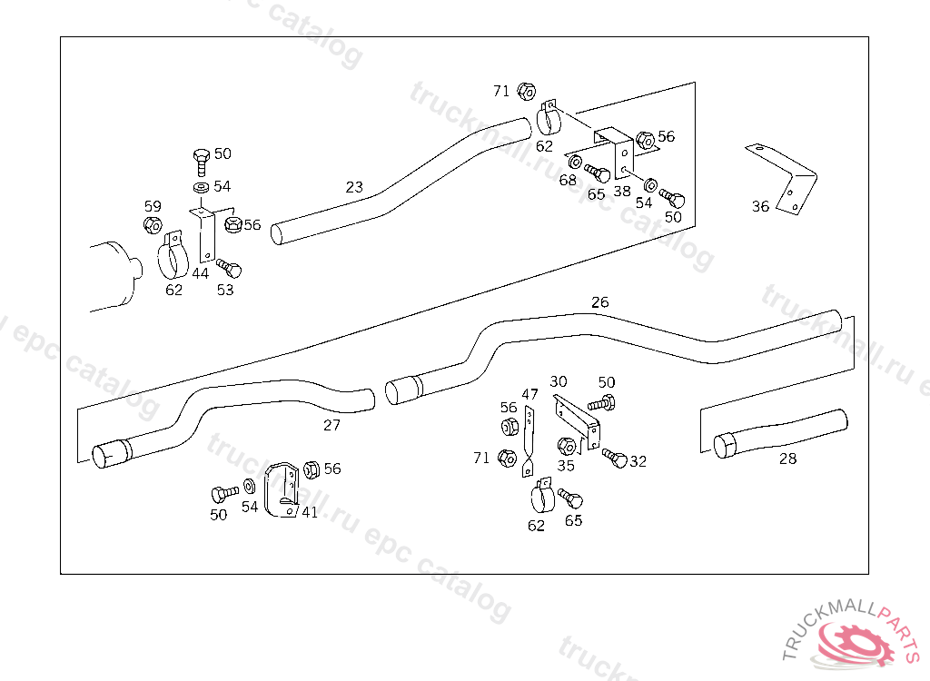 BRACKET REAR EXHAUST PIPE TO SUPPORT, ON OF 1315/1318 WITH AXLE HL 5 FROM IDENT-NO. B 976962D 014053
