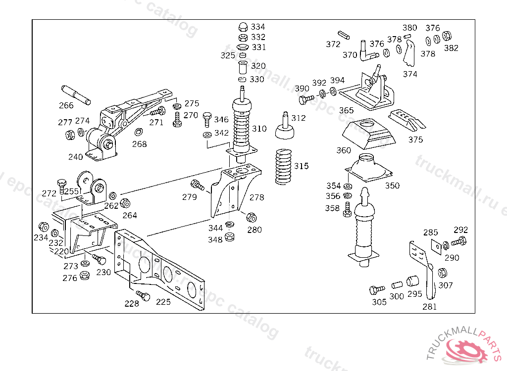 GUIDE CAB SUSPENSION,REAR LEFT, 385.068,069 ON VEHICLES WITH DB CAB ONLY 385.019 FOR USE WITH SHORT MERCEDES-BENZ CAB5 204965