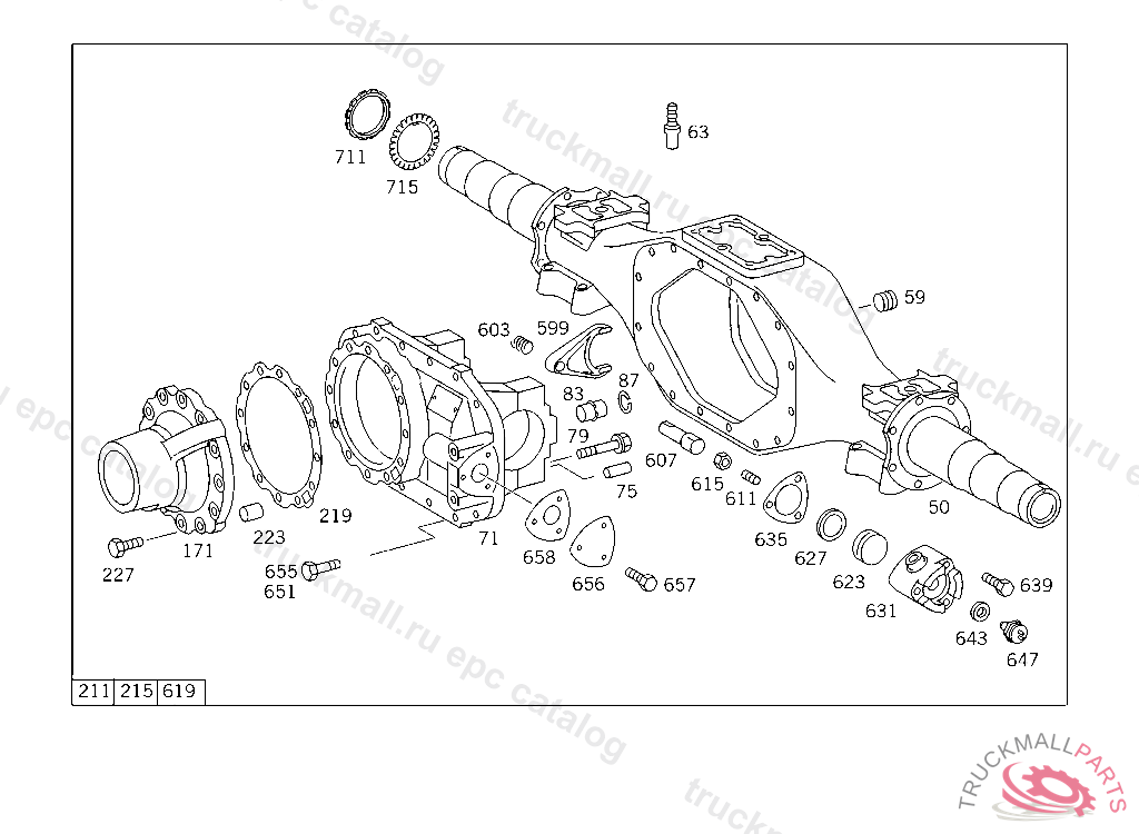 AXLE HOUSING , FIRST EXHAUST STOCK OF OLD PARTS UP TO REAR AXLE W 886898, Replaced By: A6243506320, +002A6524230006, +010A3469901104, +004A3469901304