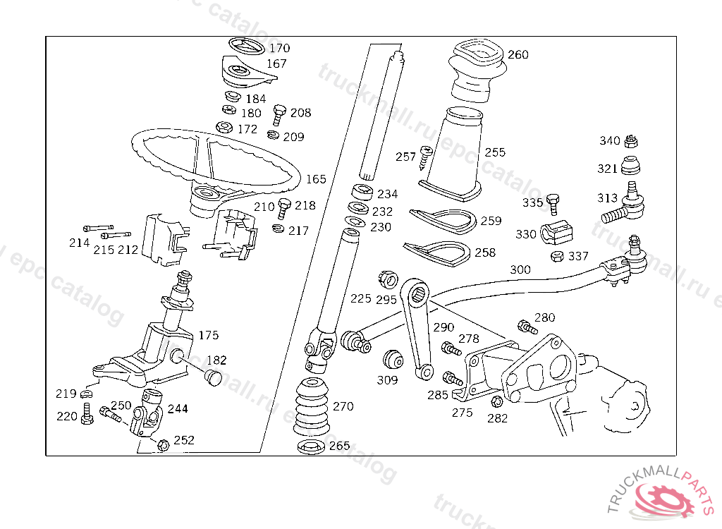 STEERING SHAFTLEMFOERDER, USED WITH SHORT MERCEDES-BENZ CAB