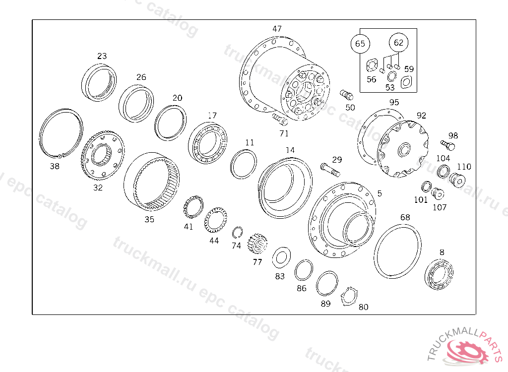 PLANETARY GEARING , FIRST EXHAUST STOCK OF OLD PARTS UP TO REAR AXLE V 477618, Replaced By: A3463504209