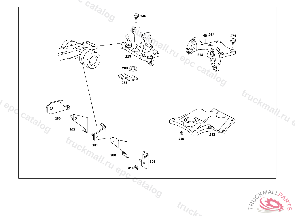 BEARING BRACKET TRISTOP CYLINDER, 393.311 FROM CHASSIS 4 450303,393,321 FROM CHASSIS 4 453074,315,325 FROM CHASSIS 4 431028,316,326 FROM CHASSIS 4 426006,395.31 2,322,412,422 FROM CHASSIS 4 426006 AND FOOTN.374 497473