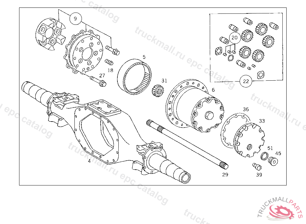 7. 001 20-IN. TRILEX HUBS,OUTSIDE PLANETARY GEAR (APL) AXLE IL.1