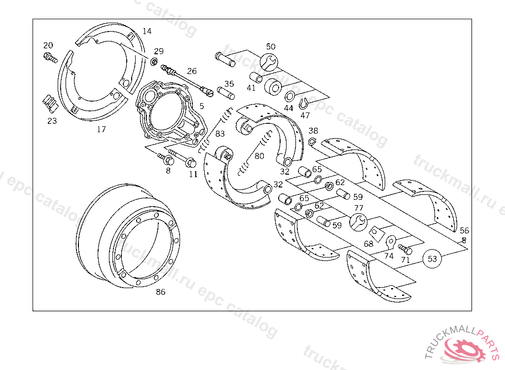 BRAKE SHOE , FIRST EXHAUST STOCK OF OLD PARTS UP TO FRONT AXLE E 128437, Replaced By: A3934202519