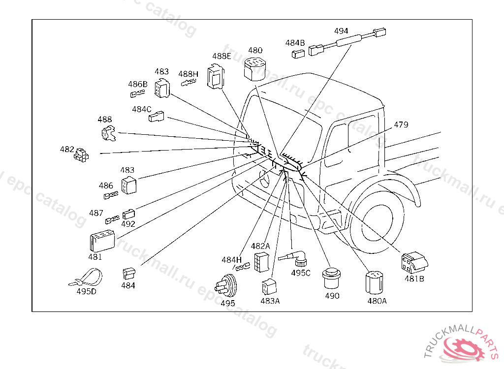 ELECTRIC CABLE FROM CHASSIS/CAB TO FRONT LONGITUDINAL DIFFERENTIAL LOCK CONTROL,5 1802665 220080