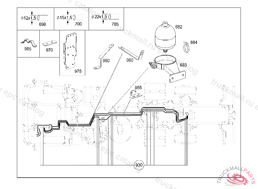 7. 001 DETACHABLE BODY COMP. & INSTALLATION PARTS, LEADING AND TRAILING AXLES IL.22