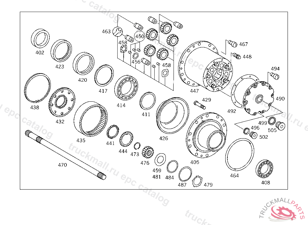 PLANETARY GEARING , FIRST EXHAUST STOCK OF OLD PARTS UP TO REAR AXLE V 477618, Replaced By: A3463504209