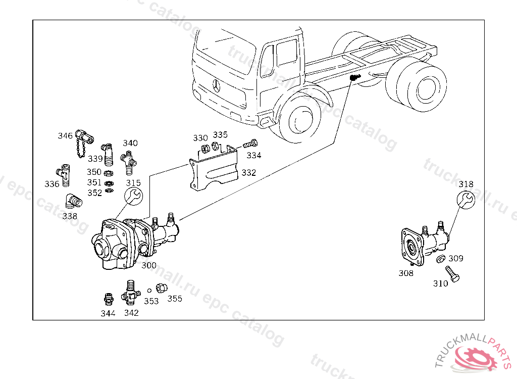 BRACKET TRUCK-TRACTOR BRAKE VALVE, 620.415 UP TO CHASSIS 5 014668 620.416 UP TO CHASSIS 5 000515 620.417 UP TO CHASSIS 4 972023