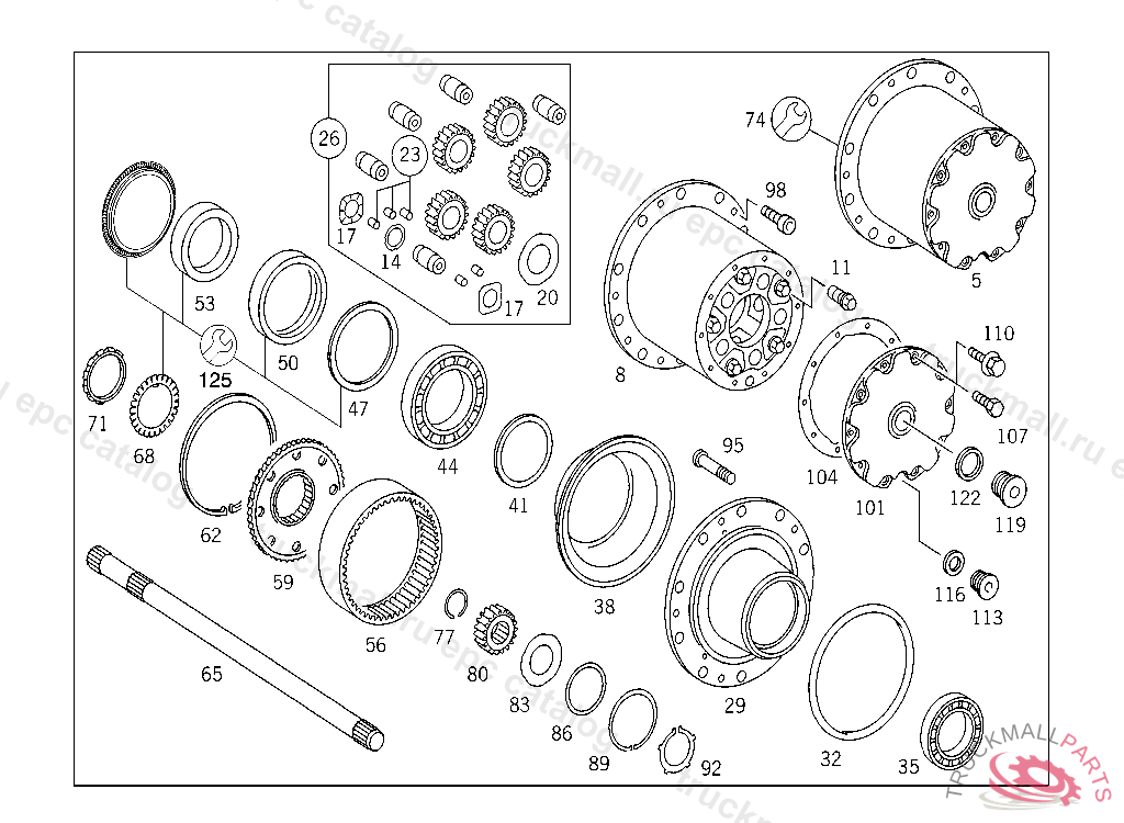 PLANETARY GEARING , FIRST EXHAUST STOCK OF OLD PARTS UP TO REAR AXLE V 477618, Replaced By: A3463504209