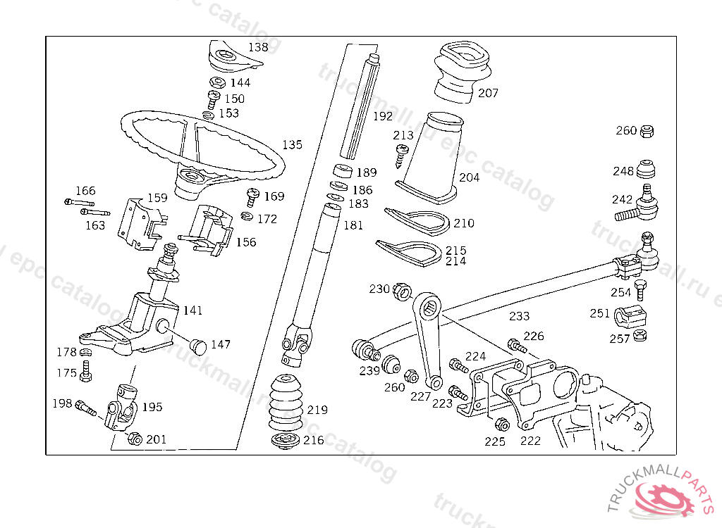 STEERING SHAFTLEMFOERDER, USED WITH SHORT MERCEDES-BENZ CAB