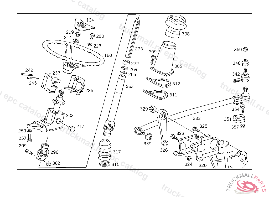 STEERING SHAFTLEMFOERDER, USED WITH SHORT MERCEDES-BENZ CAB