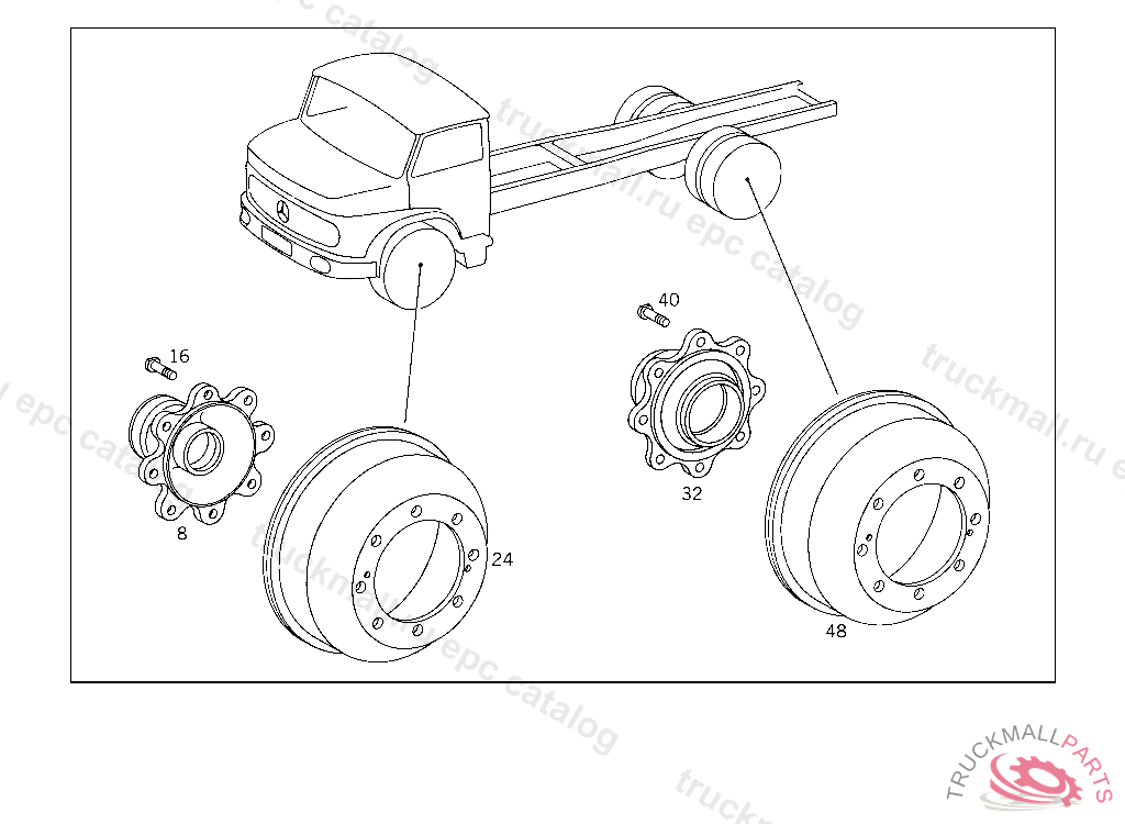 WHEEL MOUNTING BOLT IN ITS PLACE,YOU MAY ALSO USE MERCEDES-BENZ PART NO.: 381 401 03 71,1500077 TO REAR AXLES 345 350 00 00, 045 350 00 00,045 350 04 00, 345 350 87 00,345 350 88 00,345 350 89 00 345.000-008.024.101-121 UP TO IDENT NO. 588185,FROM IDENT NO. 588186 SEE MICROFICHE 816,MODEL 743.0, 345.021.033 UP TO IDENT NO 588185,FROM IDENT NO. 588186 SEE MICROFICHE 816,MODEL 745.0
