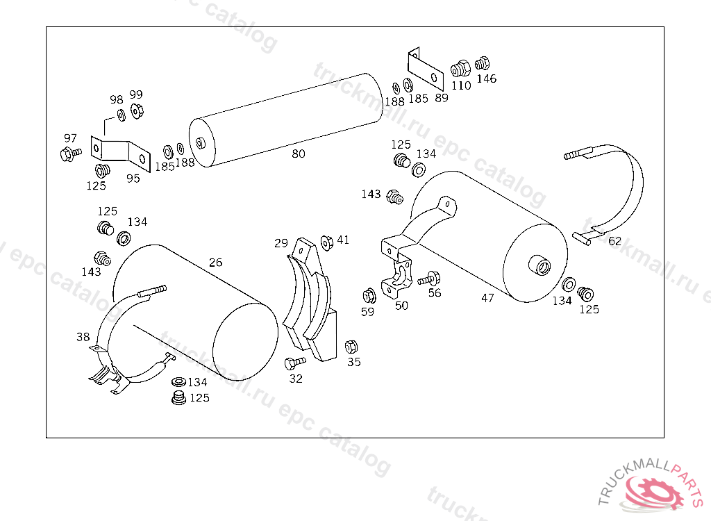 COMPRESSED AIR RESERVOIR. RESERVOIR6 L, TO VOSS 232, FOR VEHICLES WITH VOSS 230 CONNECTOR:ADD. MOUNT FITTING "A 004 997 82 72" WITH O-RING "A 000 987 04 46" AND THRUST RING "A 000 997 02 03" TO AIR RESERVOIR