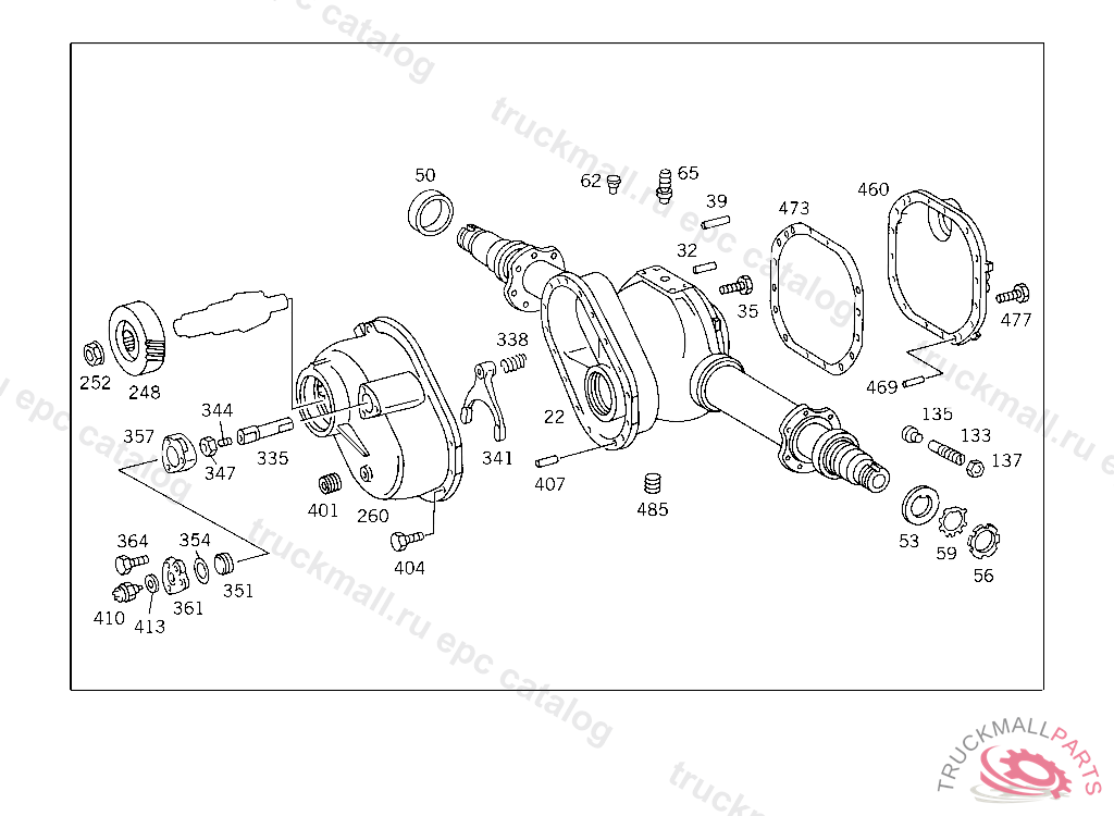 AXLE HOUSING WITH REAR AXLE TUBES AND DIFFERENTIAL CASE BEARING CAPS