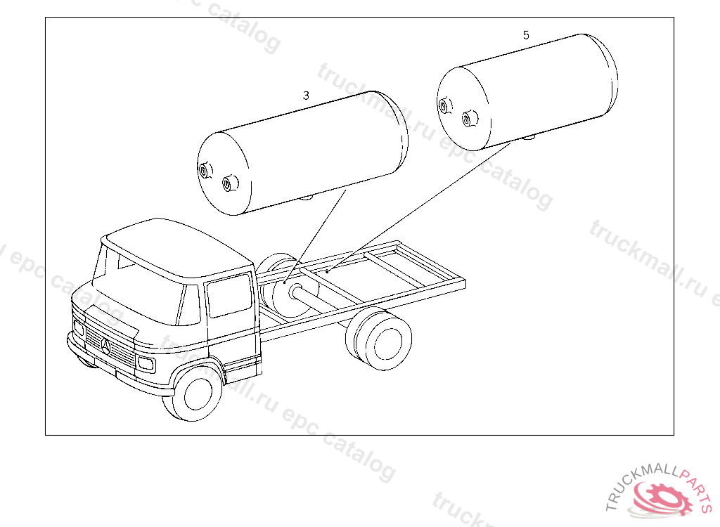 ›- 001 AIR RESERVOIR USED FOR TWO-CIRCUIT AIR BRAKE LESS COMPRESSED AIR CONNECTION TO T