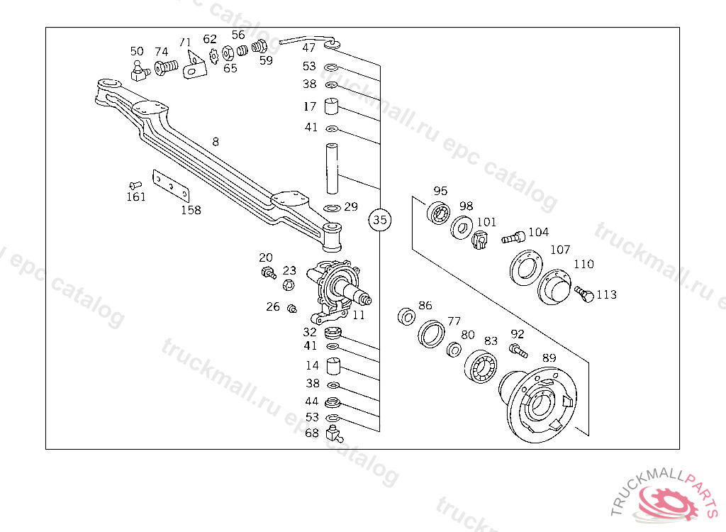 ROLLER BEARING STEERING KNUCKLE TO FRONT AXLE BEAM 50.00 MM
