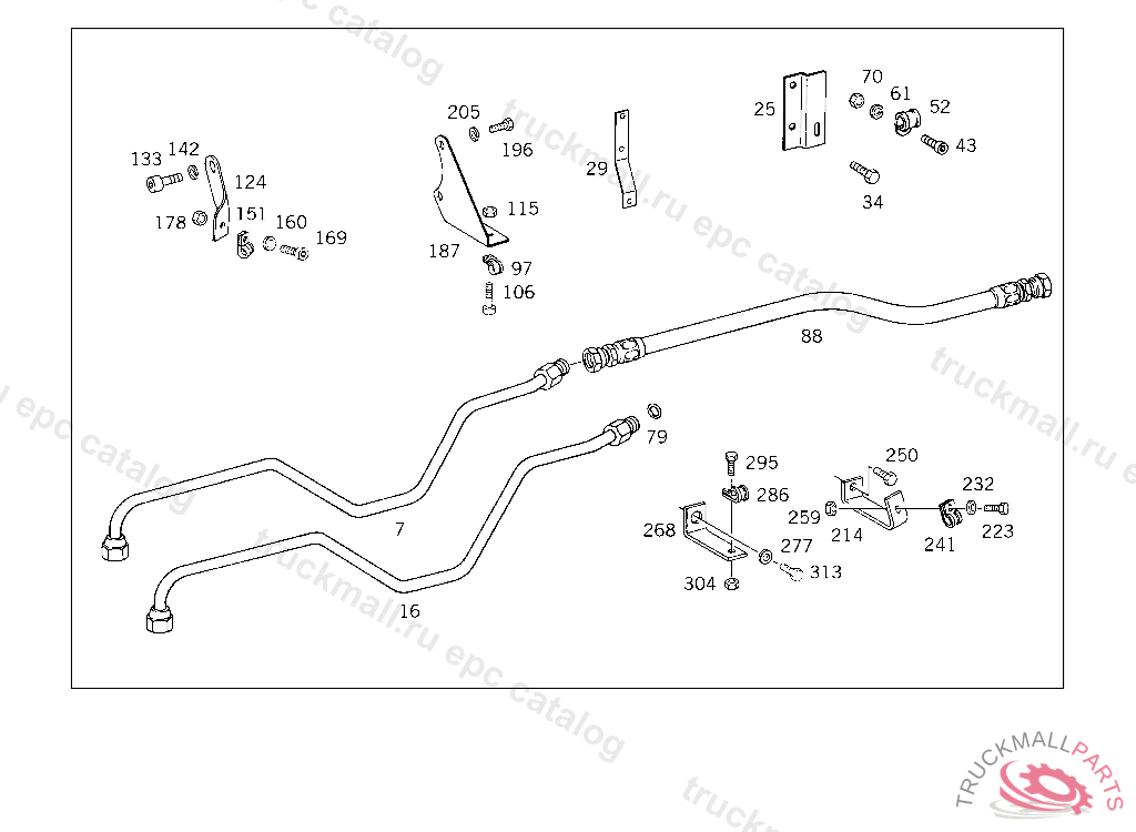 BRACKET LINE MOUNTING, TRUCKS UP TO CHASSIS 171900,BUS UP TO CHASSIS 024088 OR UP TO ENGINE 188371