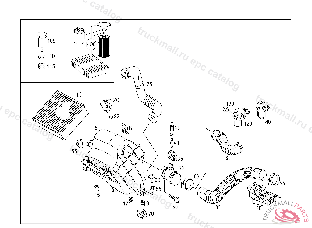INTAKE PIPE. INTAKE MANIFOLD AIR FILTER ON CHARGE AIR COOLER