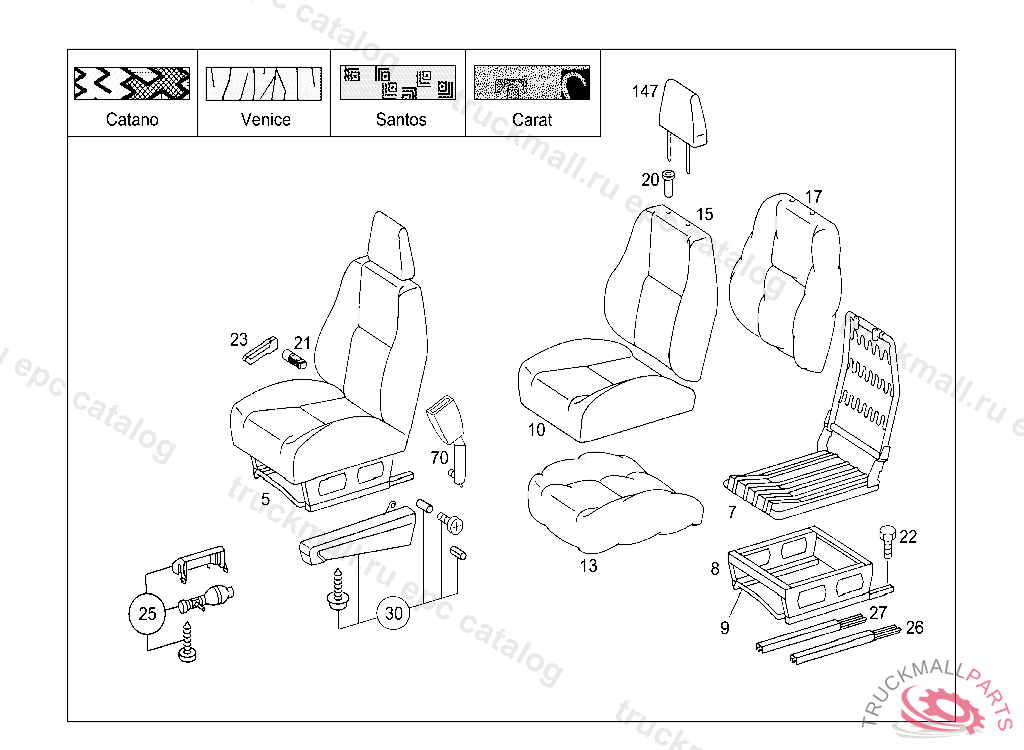 SEAT DRIVER'S SEAT LEFT,FABRIC "VENICE", IF REQUIRED,ARMREST MUST BE ORDERED SEPARATELY