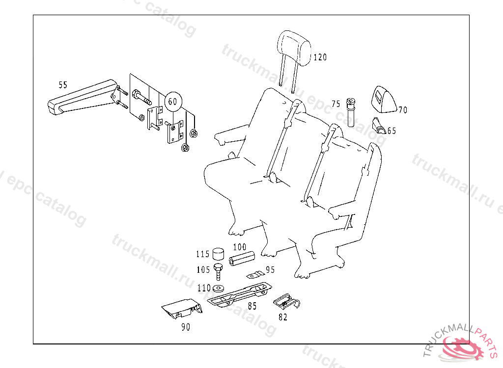 TAKE-UP DEVICE TRIPLE OCCUPANCY SEAT TO FLOOR