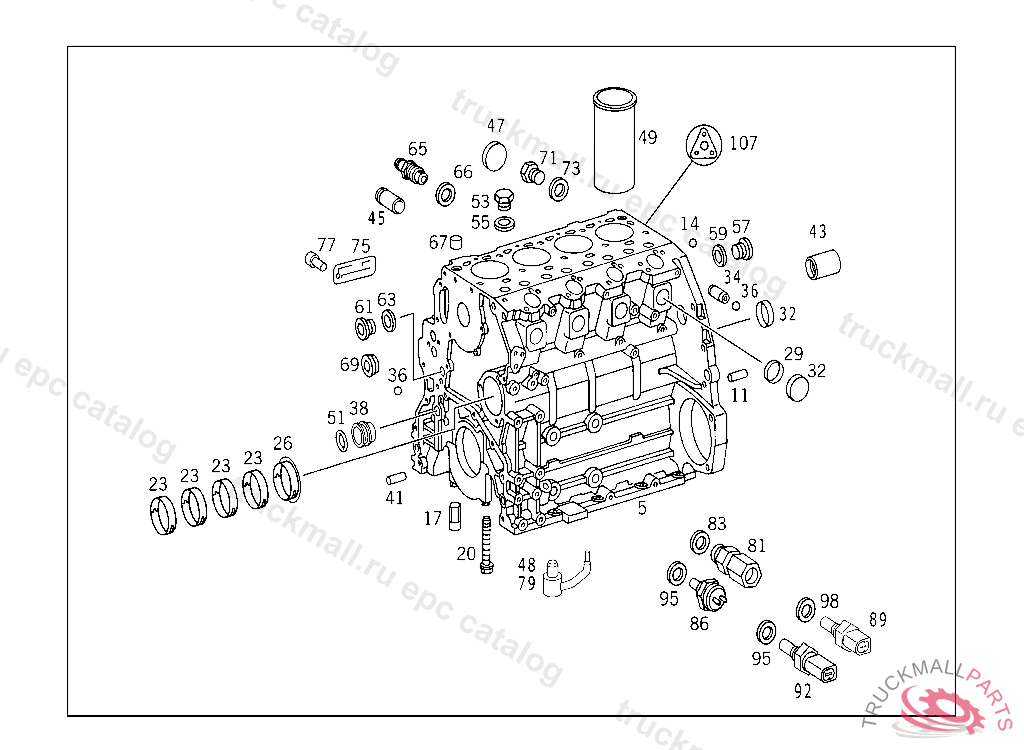 CRANKCASE , UP TO ENGINE 108128 ORDER ADDITIONALLY: 4X INJECTION PUMP, 5X MAIN BEARING PARTS KIT, 1X CYL. HEAD UP TO ENGINE 185256 ORDER ADDITIONALLY: 5X MAIN BEARING PARTS KIT, 1X CYL. HEAD UP TO ENGINE 301570 ORDER ADDITIONALLY: CYLINDERHEAD
